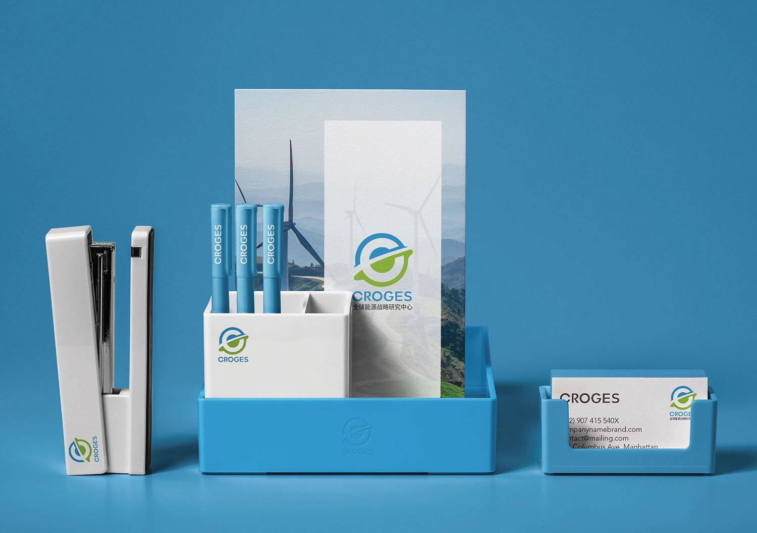标志以旋转的地球造型为核心,传递能源领域的蓬勃生命力,象征全球能源战略研究的动态发展与无限可能。其中,蓝色区域喻指天空,绿色区域代表大地,二者交织象征新能源技术赋能地球,带来环境祥和与生态可持续的生命力,凸显对清洁能源、绿色发展的追求。