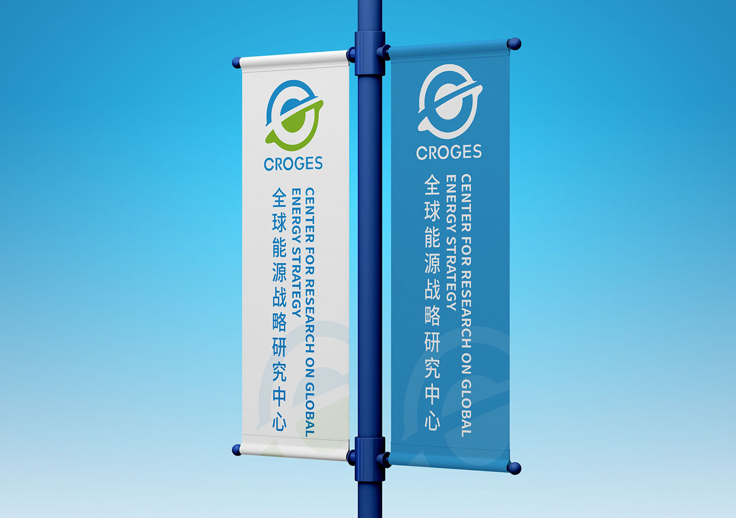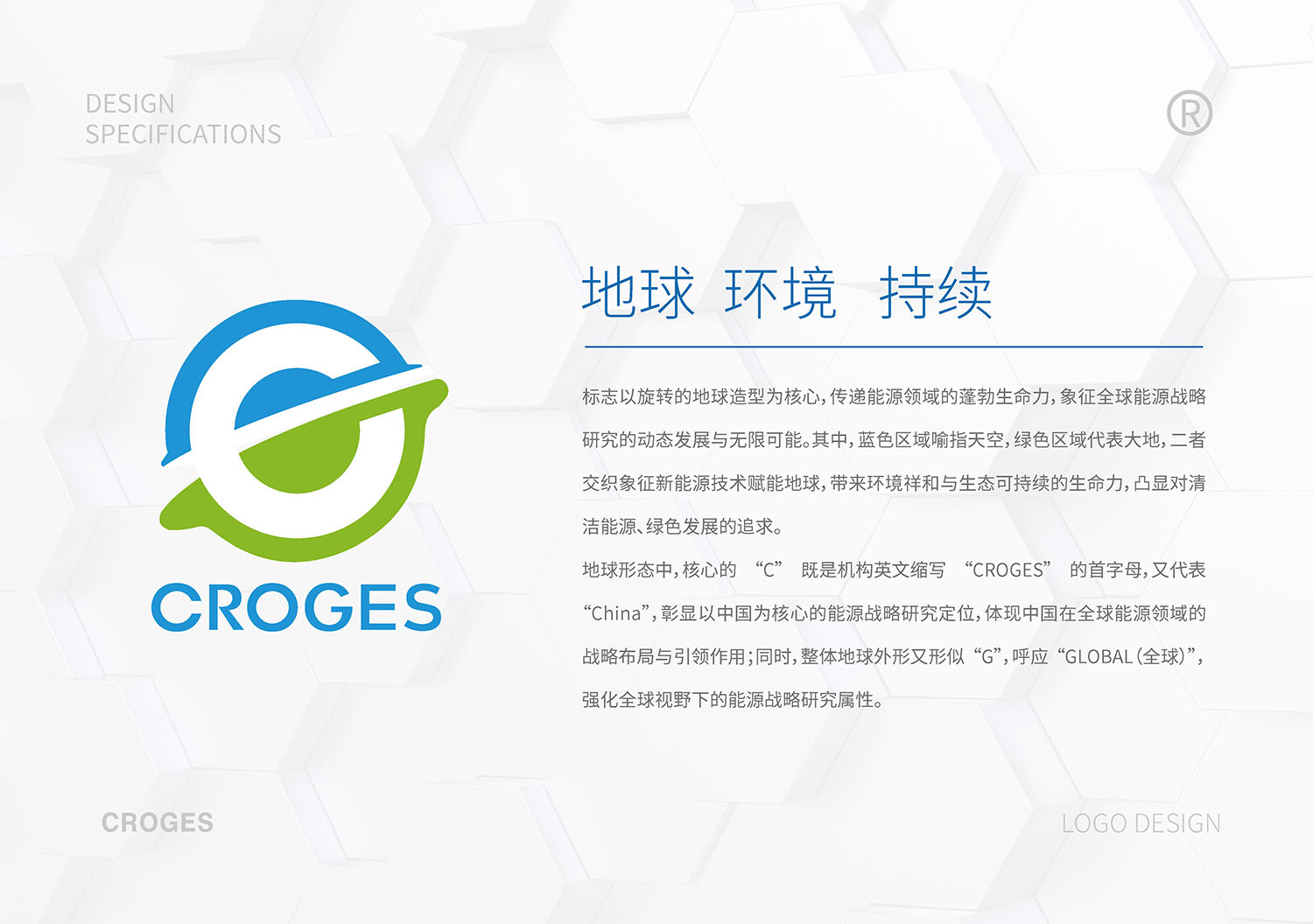 标志以旋转的地球造型为核心,传递能源领域的蓬勃生命力,象征全球能源战略研究的动态发展与无限可能。其中,蓝色区域喻指天空,绿色区域代表大地,二者交织象征新能源技术赋能地球,带来环境祥和与生态可持续的生命力,凸显对清洁能源、绿色发展的追求。